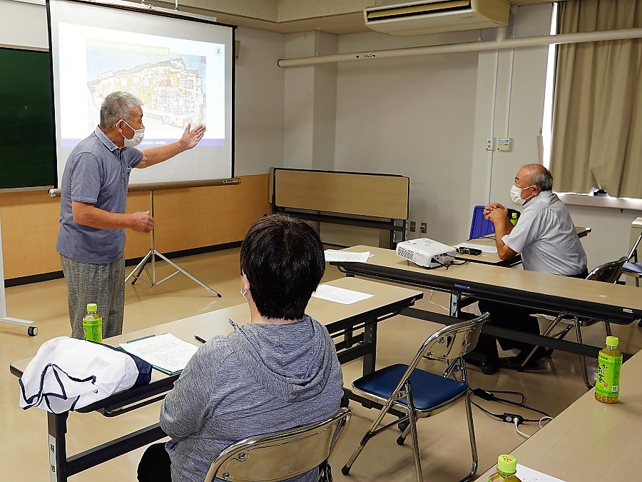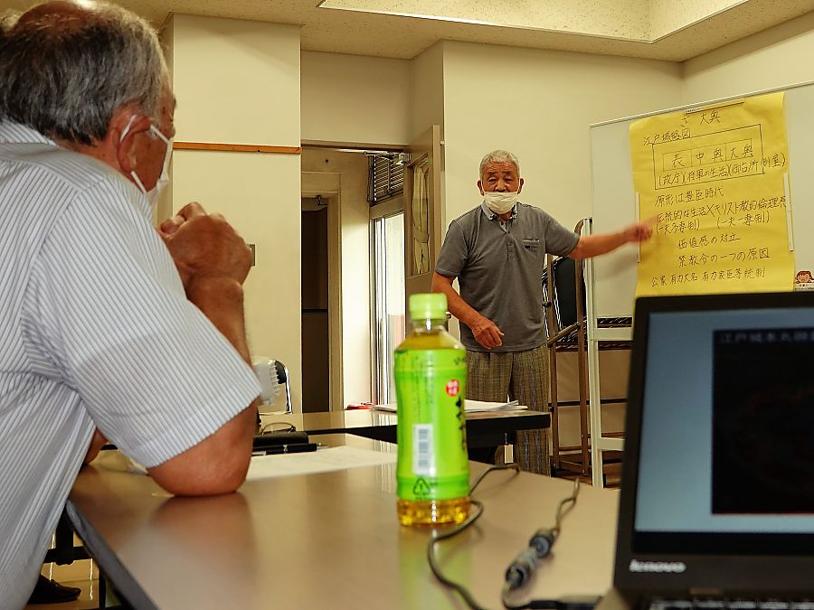 | 「コロナ感染拡大は一度は収束に向かったものの、非常事態解除後、感染者は再び増加に転じ、残念ながら今も拡大が続いています。大雨の被害も深刻です。このような中にあって、IOCの活動もかなり制限されておりますが、私たちは出来ないことを悔やむのではなく、今何ができるのかを考えて行きたいと思っております。今日はその第一回目、私自身も大変楽しみにしております。」と、渡辺敏之会長。 | 今日の講師三浦雄司さんのプロフィールです。 ・岩切若宮町内会会長・岩切東コミセン管理運営委員長・保護司・仙台藩士会会員・IOC(岩切おもしろ倶楽部)副会長・岩切東コミセンラジオ体操インストラクター・岩切小学校中学校アドバイザリースタッフ |